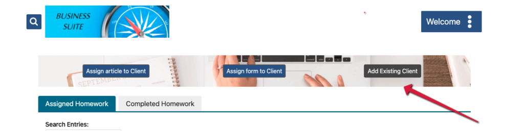 - Go to WELCOME/Office Dashboard/Add Existing Client Button