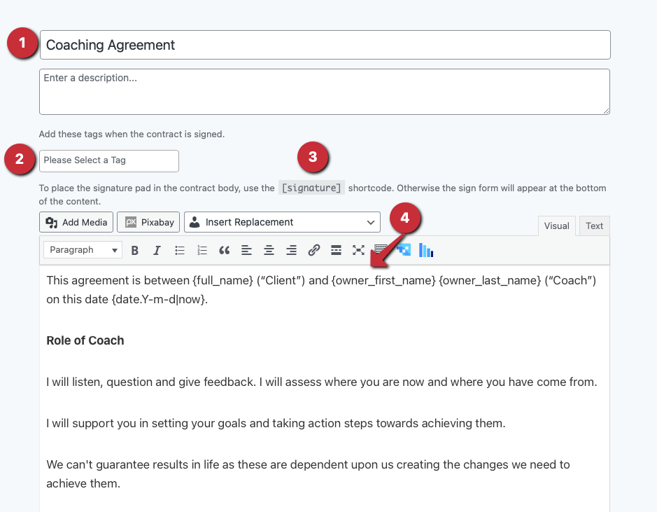 Once your contract is ready click on save. It will generate a shortcode for your contract. You can copy the newly generated shortcode for your contract and paste it onto your website.