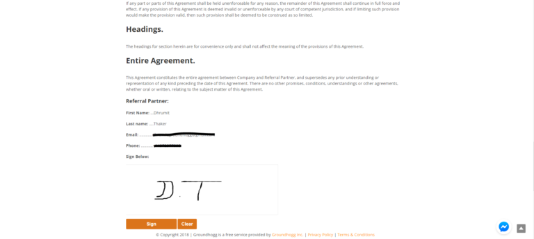 Once you add the shortcode on your page it will display the contract to your users. If your contract contains replacement code then it’s values will be automatically fetched from contact details.
