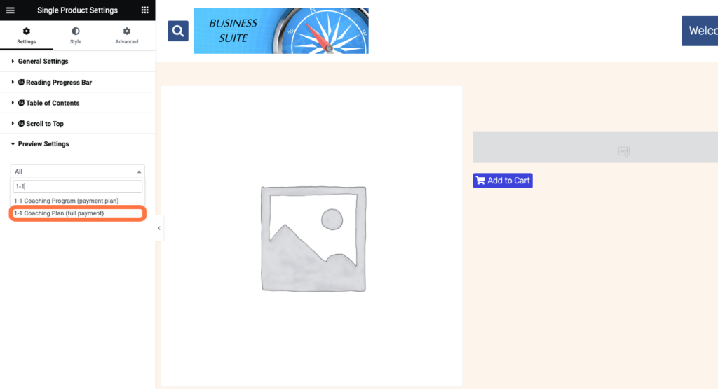 Type on the product you want to work with (for this example we are using the DONE FOR YOU product 1-1 Coaching Program)