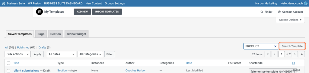 Click on Search Template