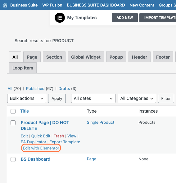 Locate Product Page|DO NOT DELETE and click on the Edit with Elementor