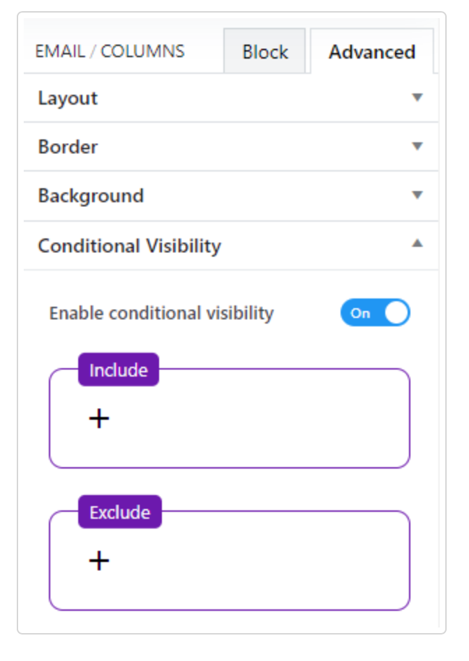 Allows you to display a block based on including or excluding filters. The same type of filters used in Contacts.