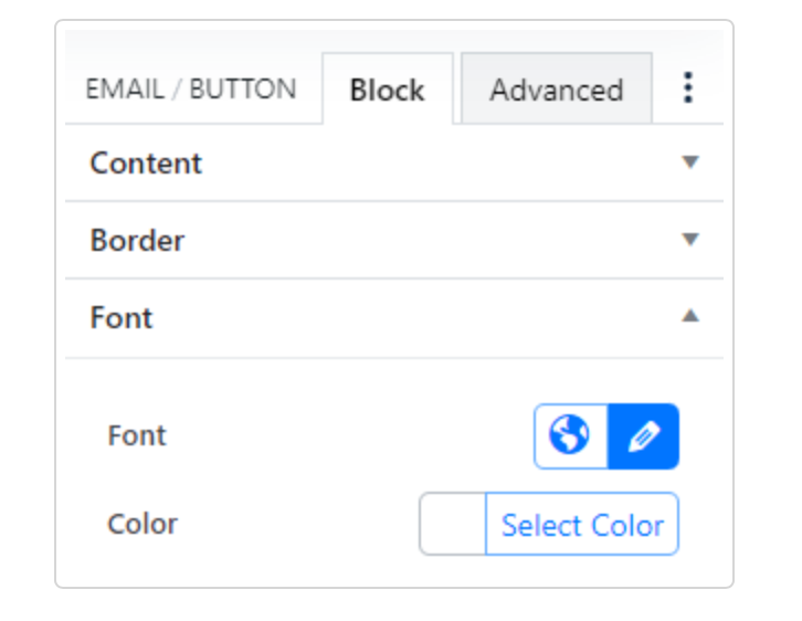 - Font( Globe gives you access to the global type settings, and the pencil edits specific Font Family, Font Size, Line Height, Font Weight, Font Style, and Transform)