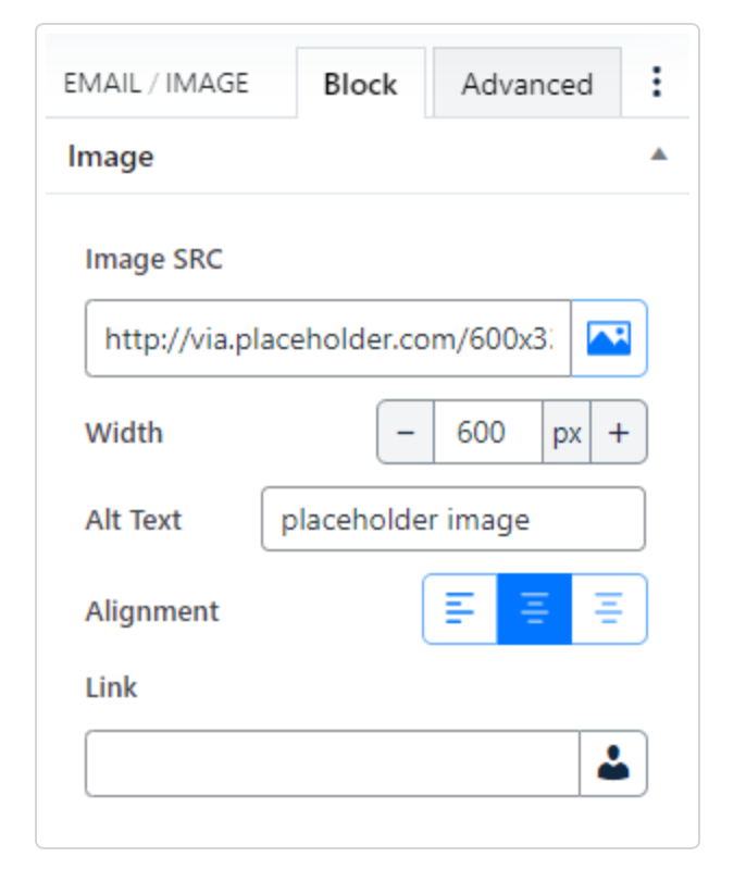 - Image SRC (Select an image from the Media library or upload an image)