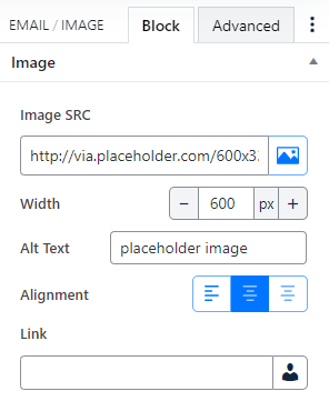 - Image SRC (Select an image from the Media library or upload an image)