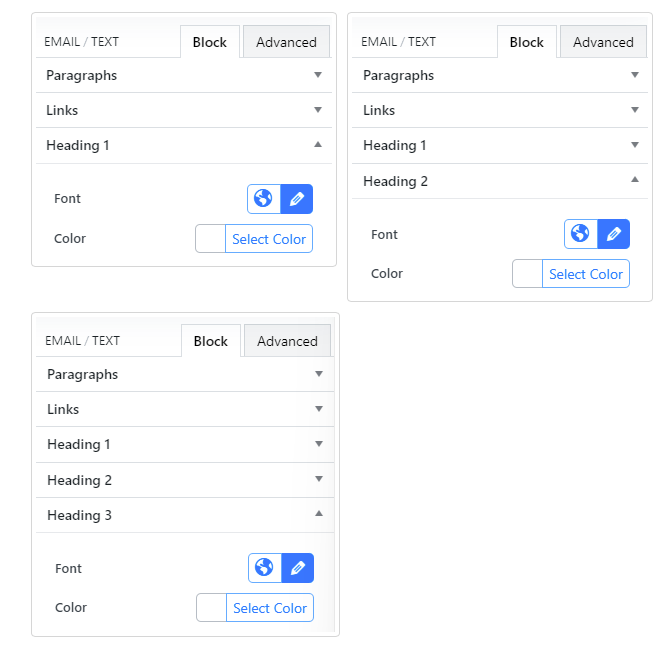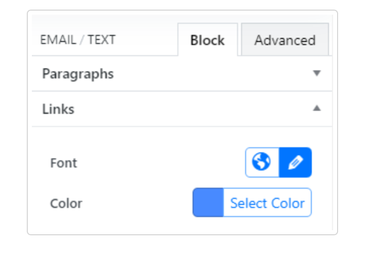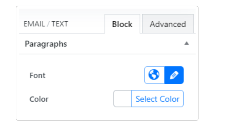 - Font( Globe gives you access to the global type settings, and the pencil edits specific Font Family, Font Size, Line Height, Font Weight, Font Style, and Transform)