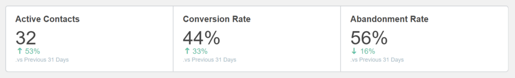 Next on the page are the funnel quick stats, these provide insight into funnel trends, like the number of active contacts within the reporting time range.