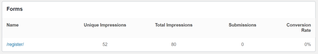 The forms report will compile conversion rate, leads and impressions for all the forms in the funnel.